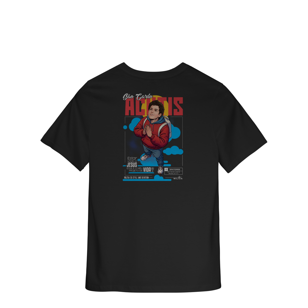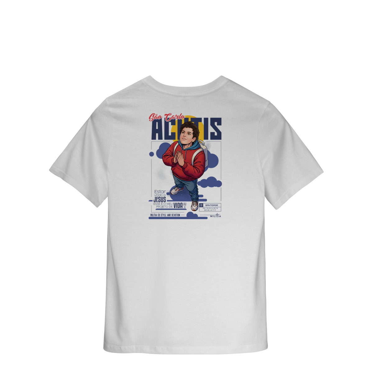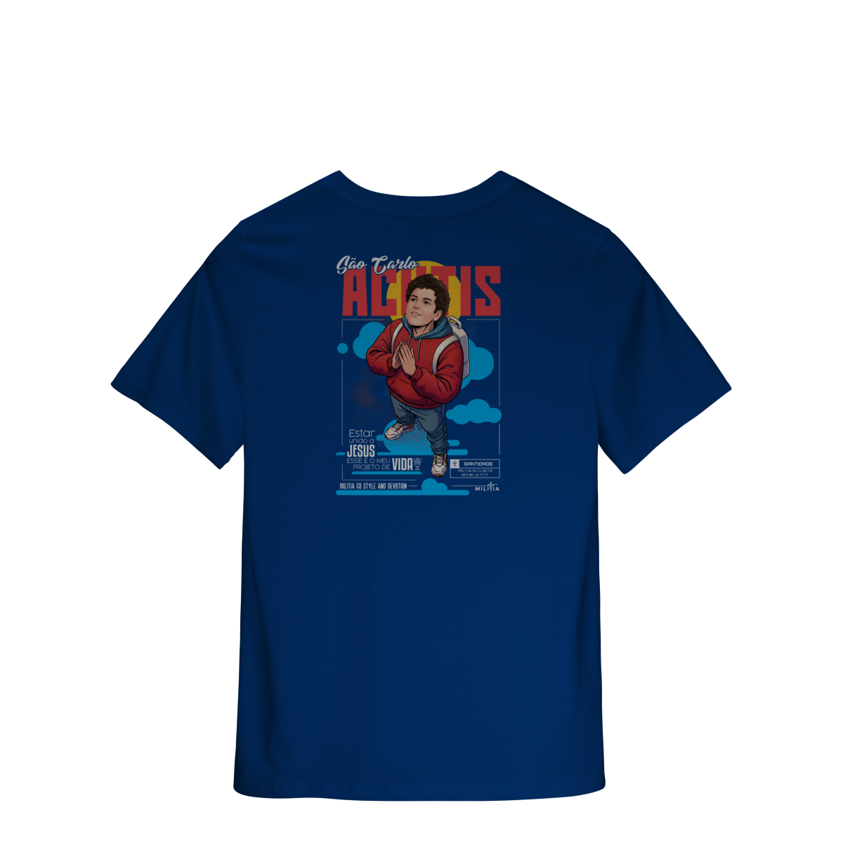 A Camiseta Infantil Projeto de Vida de 2 a 8 anos foi pensada para vestir sua criança com fé e pureza desde cedo, inspirada no testemunho de Carlo Acutis, o jovem Santo que mostrou que a santidade também é possível na vida cotidiana.