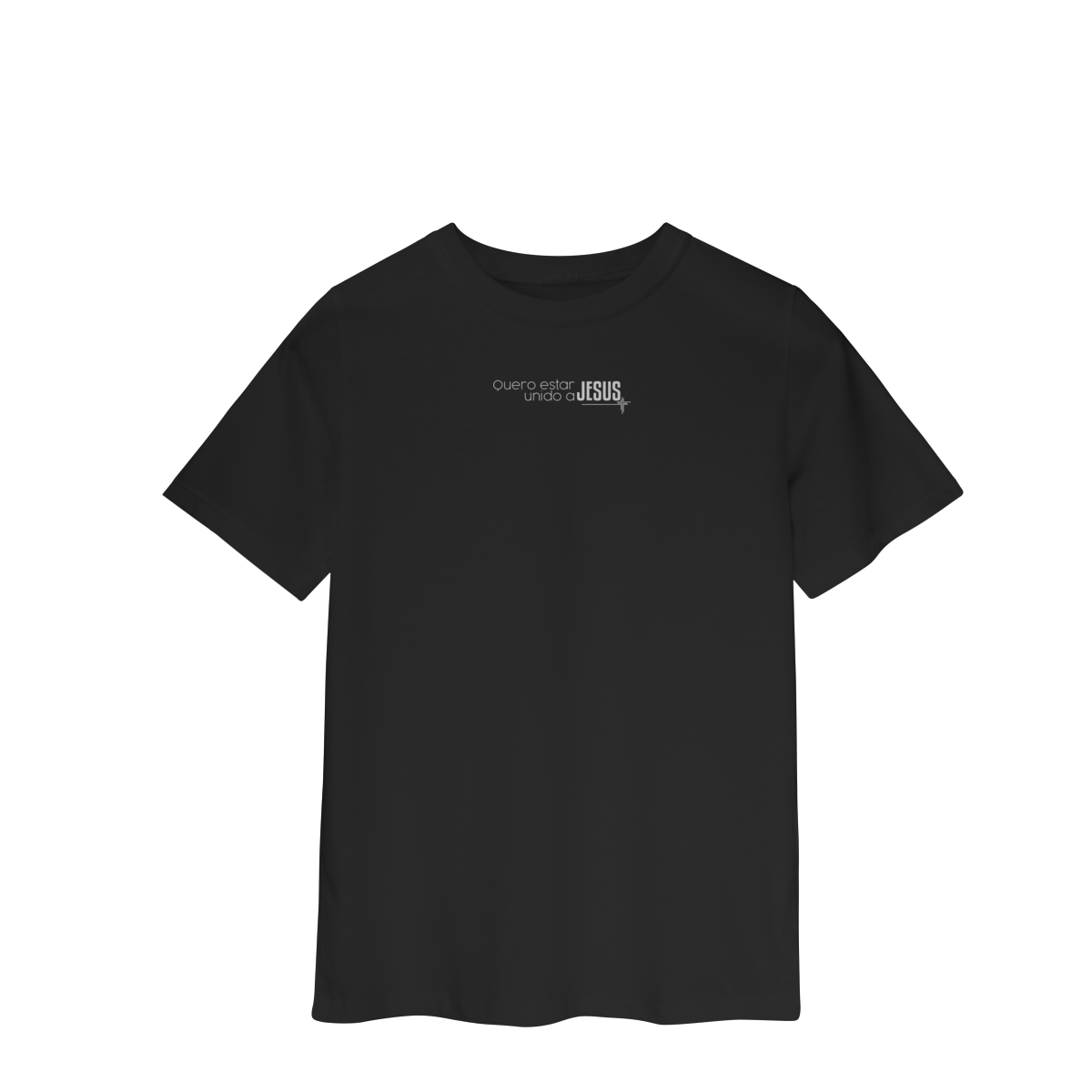 Com modelagem confortável e delicada, traz na frente a frase “Quero estar unido a Jesus”, em uma estampa sutil que transmite espiritualidade com leveza.
