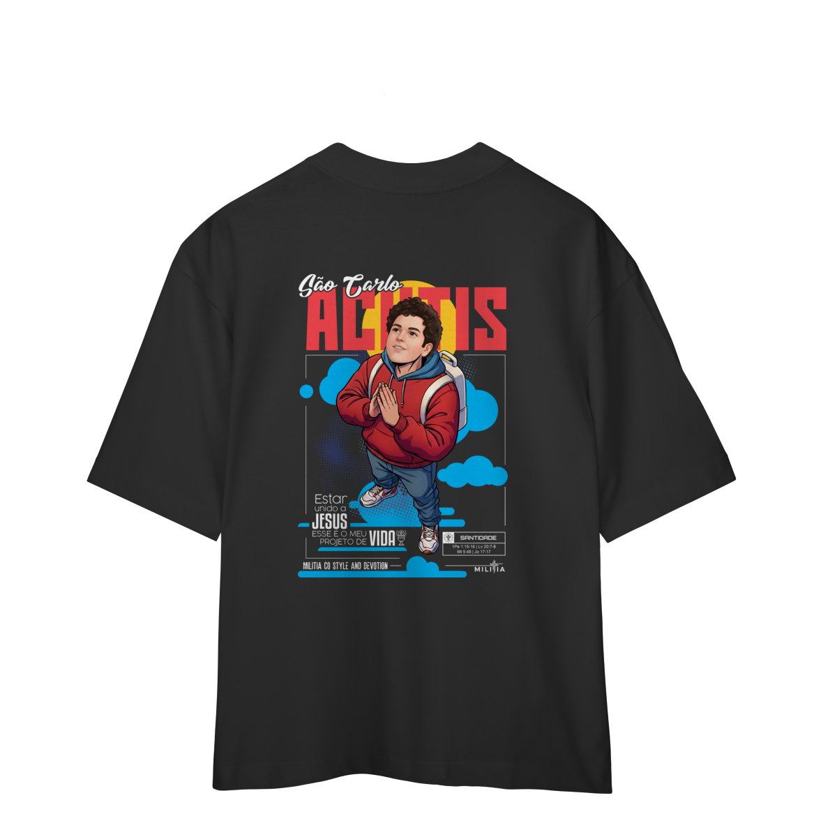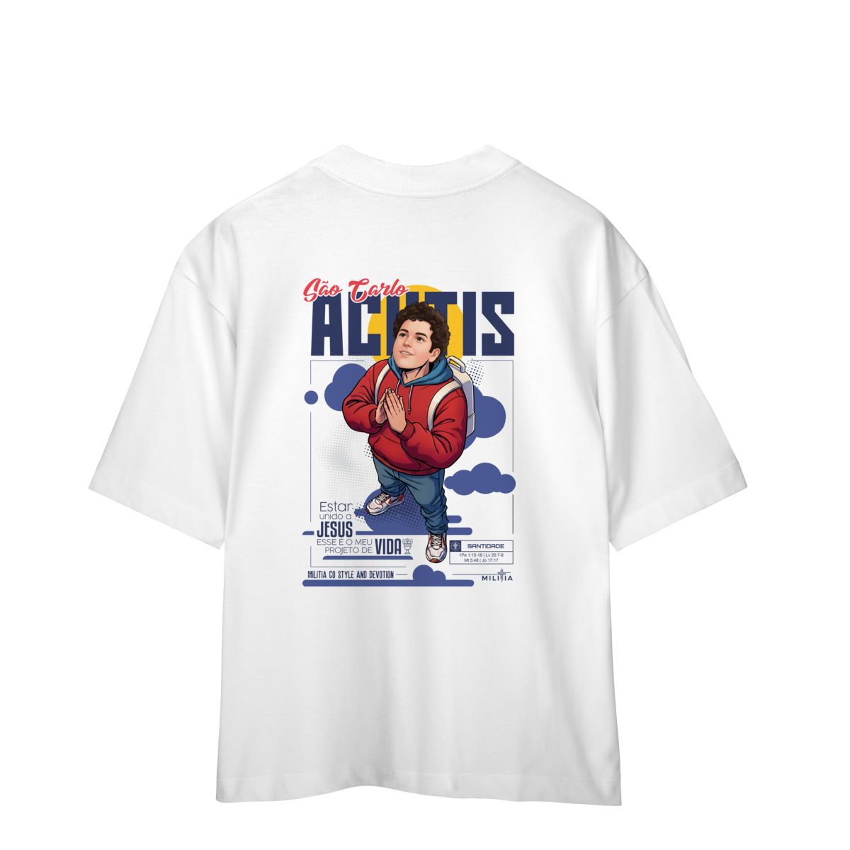 A Camiseta Oversized Projeto de Vida foi criada para quem deseja unir fé, autenticidade e estilo no dia a dia. Inspirada no Santo Carlo Acutis, jovem beato que mostrou ao mundo que a santidade também é possível nos tempos atuais, a peça transmite um convite à espiritualidade de forma simples e bela.